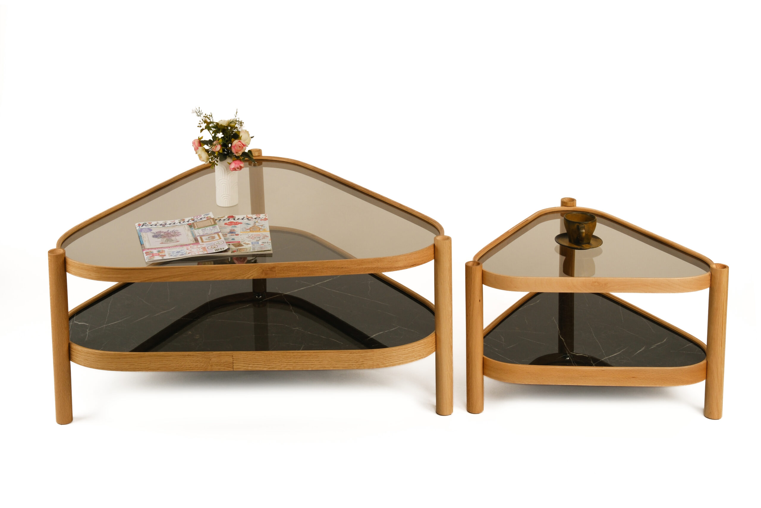 Materyal: Doğal Ahşap / Temperli Bronz Cam 4 mm / İç Tabla Ahşap Kaplamalı 18 mm Mdf / İç Tabla Hi-Gloss Lak Panel Mermer Desenli Kaplama 18 mm Mdf
